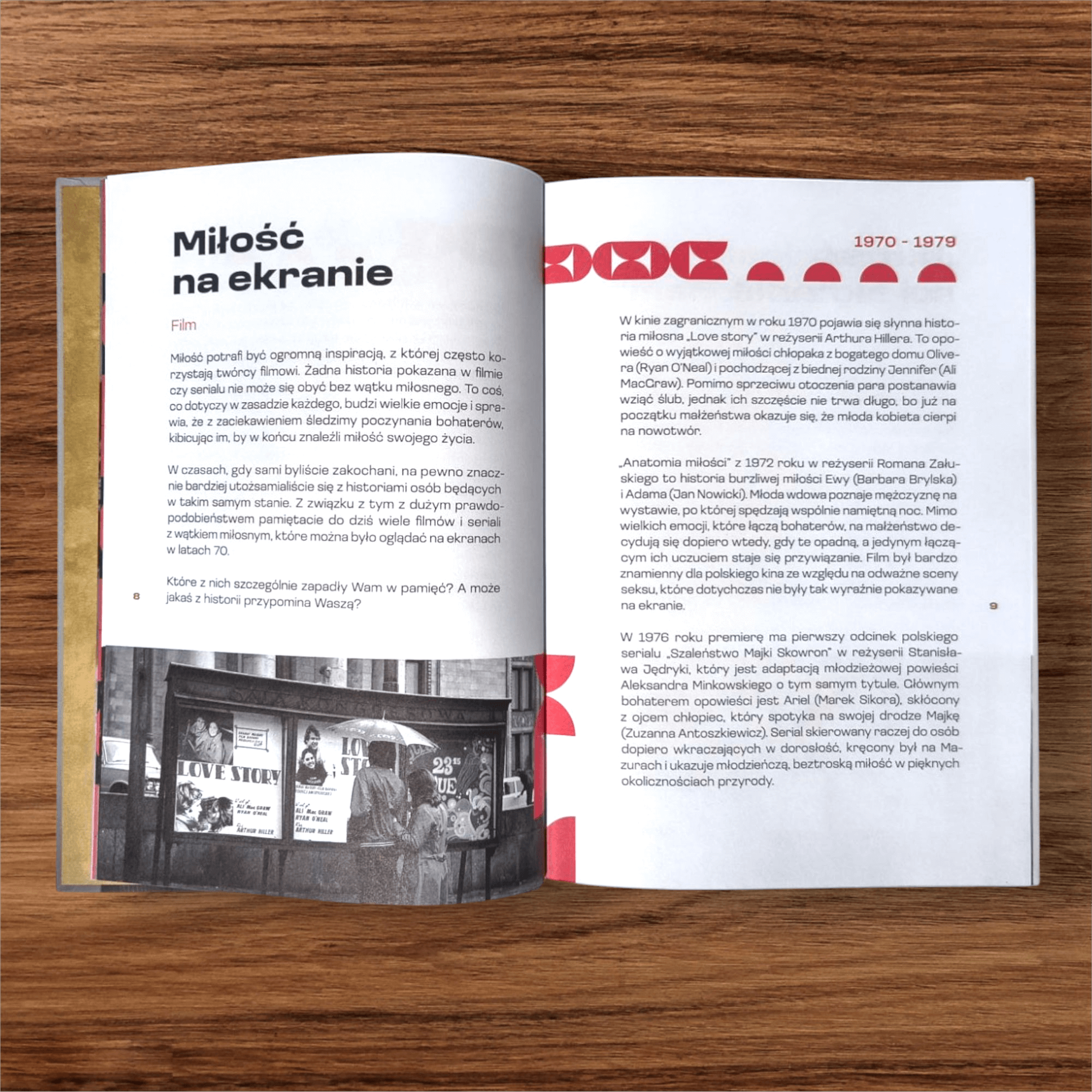 Książka „Powiedzieliśmy TAK w latach 70.” to oryginalna i elegancka albumowa kronika przedstawiająca życie małżeńskie i społeczne w Polsce na przestrzeni lat 70. XX wieku aż po współczesność. Każda dekada została szczegółowo opisana, uwzględniając takie aspekty jak zawieranie małżeństw, życie rodzinne, popularne trendy w modzie, kinie, muzyce oraz ważne wydarzenia sportowe i technologiczne. Publikacja zawiera również liczne ciekawostki, opisy znanych ślubów i sylwetki popularnych postaci z różnych epok. Całość stanowi fascynującą podróż sentymentalną, ukazującą zmieniające się realia życia w Polsce na tle istotnych wydarzeń historycznych i kulturowych.